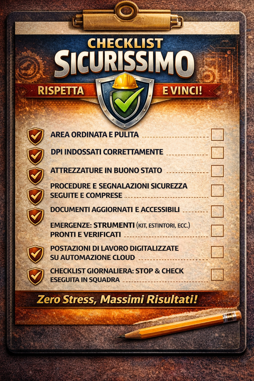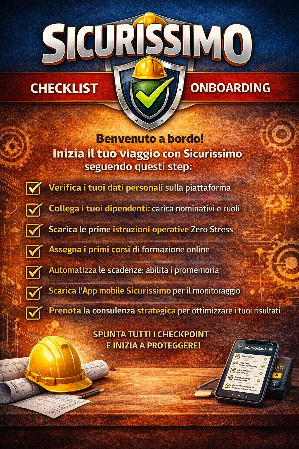 Il tuo kit di sopravvivenza normativa. Accedi al più completo hub di risorse gratuite in Italia per imprenditori, rspp, consulenti, professionisti, e lavoratori. Strumenti tattici accreditati per proteggere la tua azienda, i tuoi lavoratori e il tuo patrimonio.